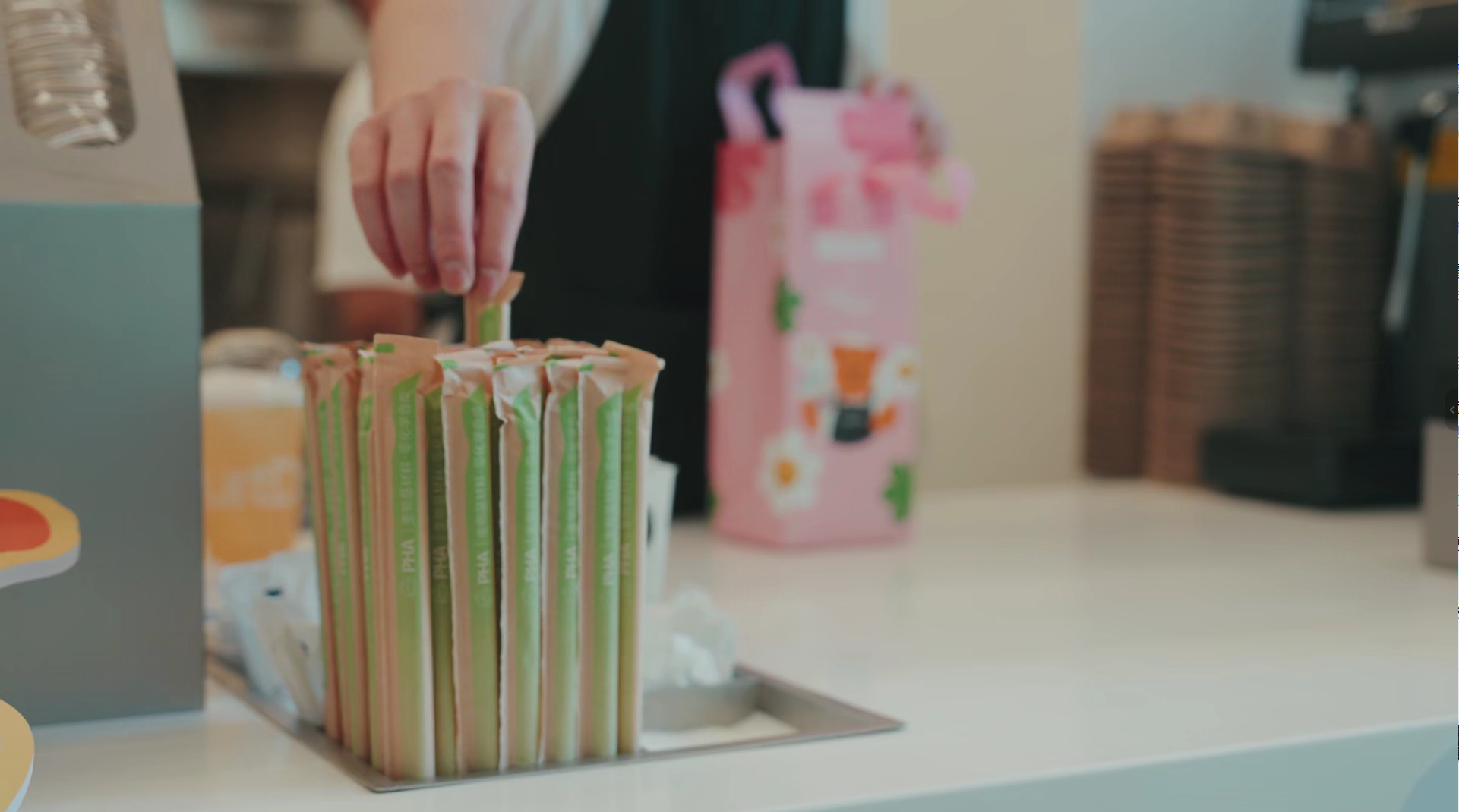 这款乳白色吸管诞生的背后,是四方团队对塑料“回归自然”理念的坚持。PHA由微生物在自然界中发酵"种"出,经TÜV权威鉴定,符合生物基材料的范畴,替代化石原料,原材料即可降低约60%的碳排放。